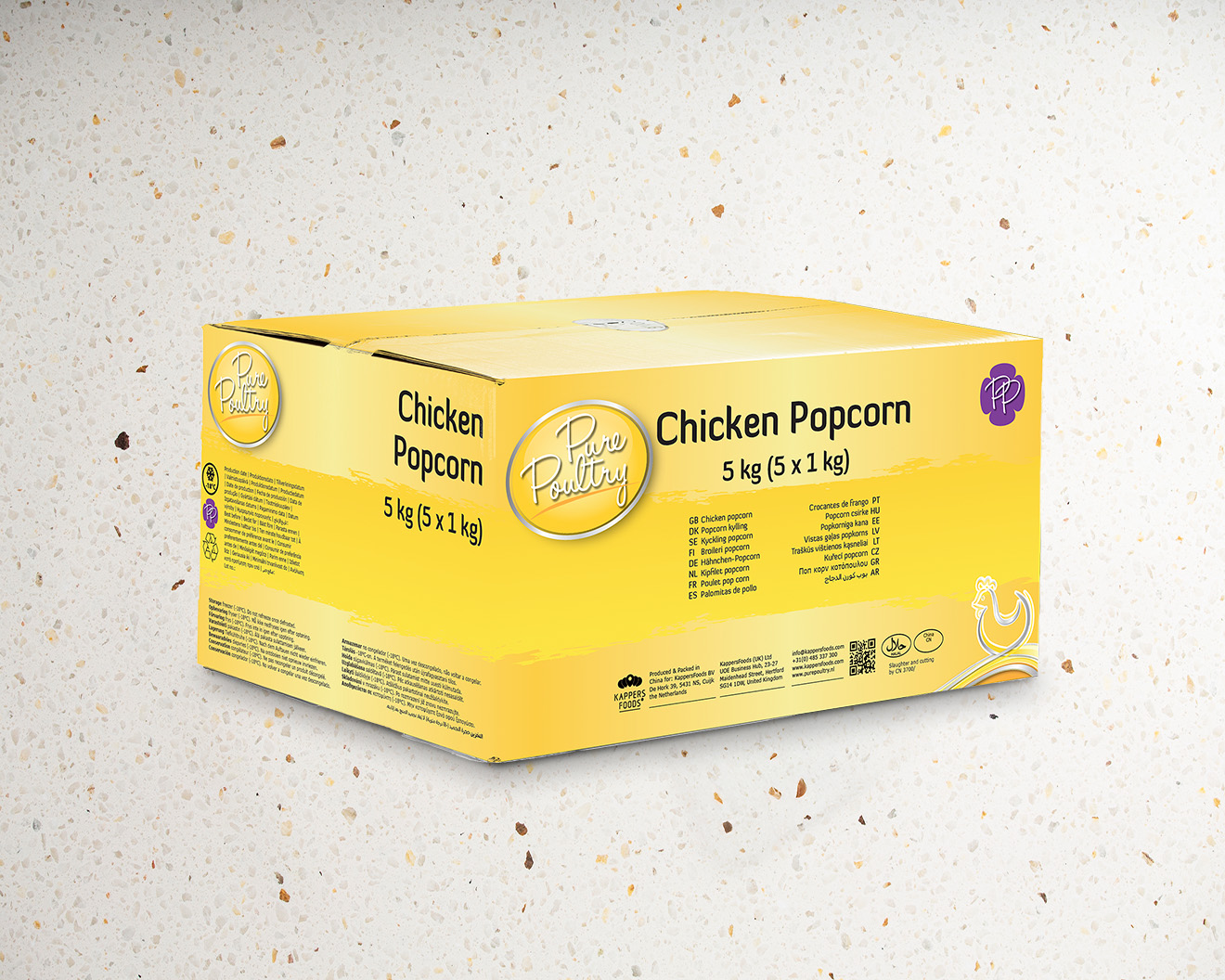 Chicken Popcorn, a premium snack that embodies both quality and taste. Made from pieces of whole muscle chicken breast fillet, each piece is expertly coated in a savoury breading. Perfectly crispy on the outside and tender on the inside. Chicken popcorn is of course a great snack or appetizer, but can also add something extra to your pasta or a salad.
