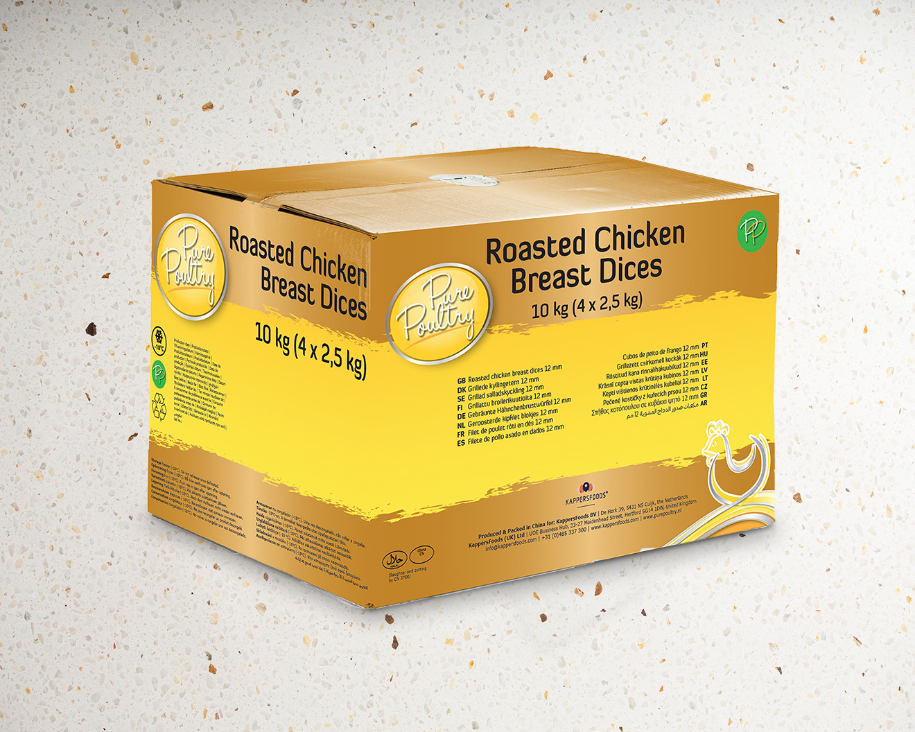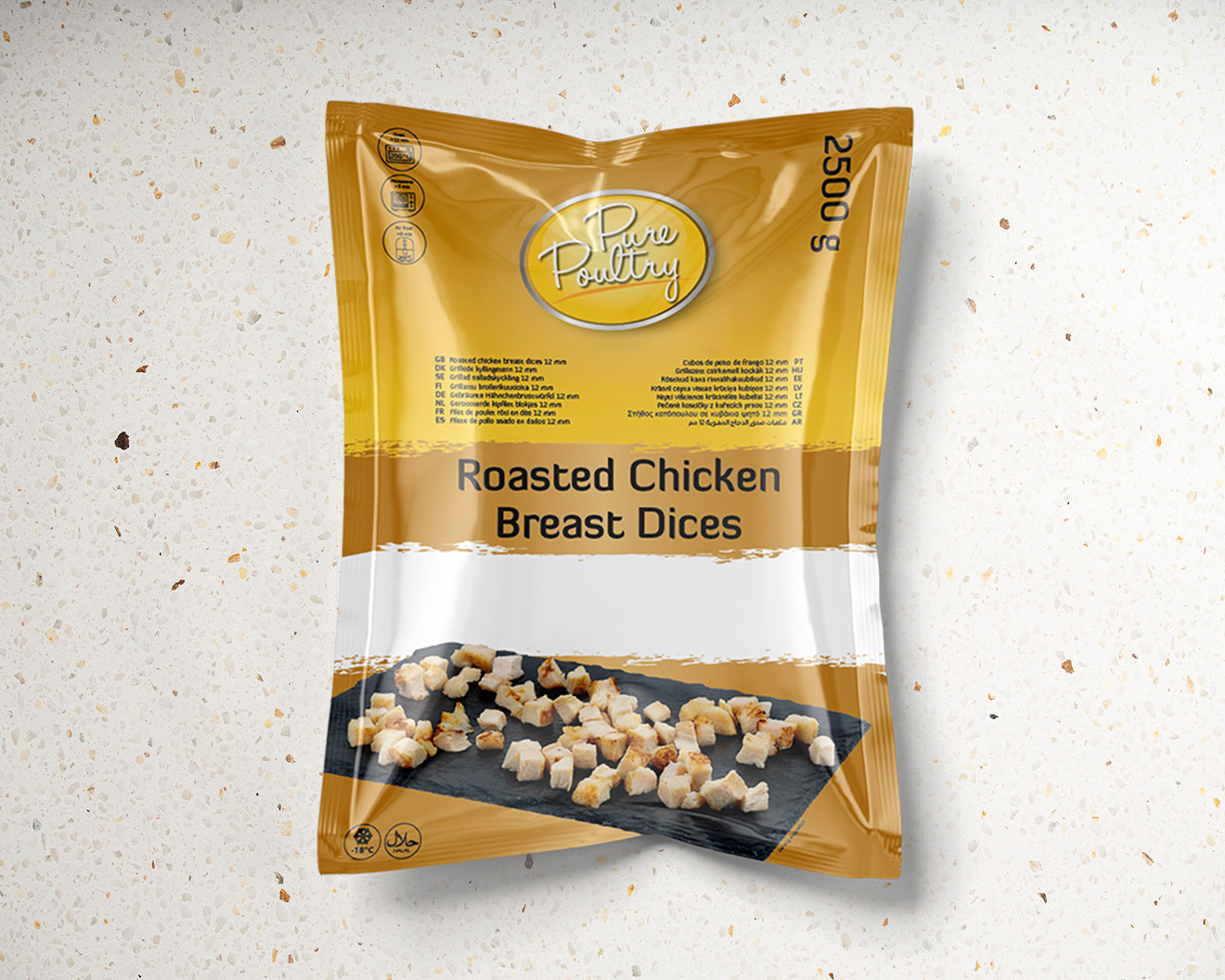 Roasted chicken breast diced for your convenience. Easy to use and ready to eat. Sprinkle the dice in a salad, as a pasta topping or on a pizza. The delicious and tender diced chicken breasts are also perfect for your own signature sauce or ragout.