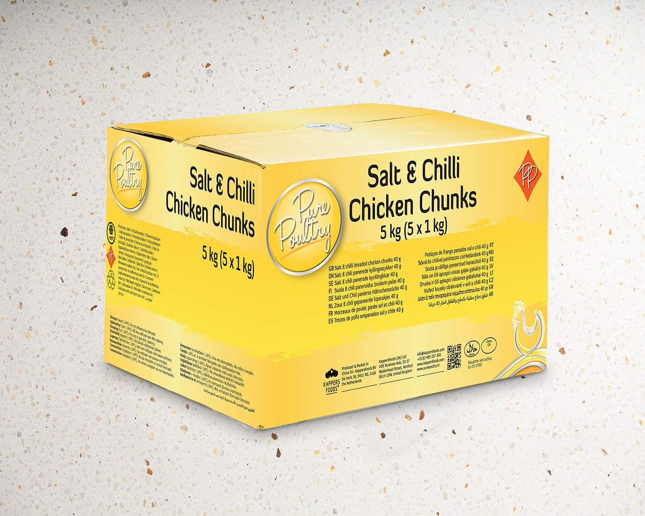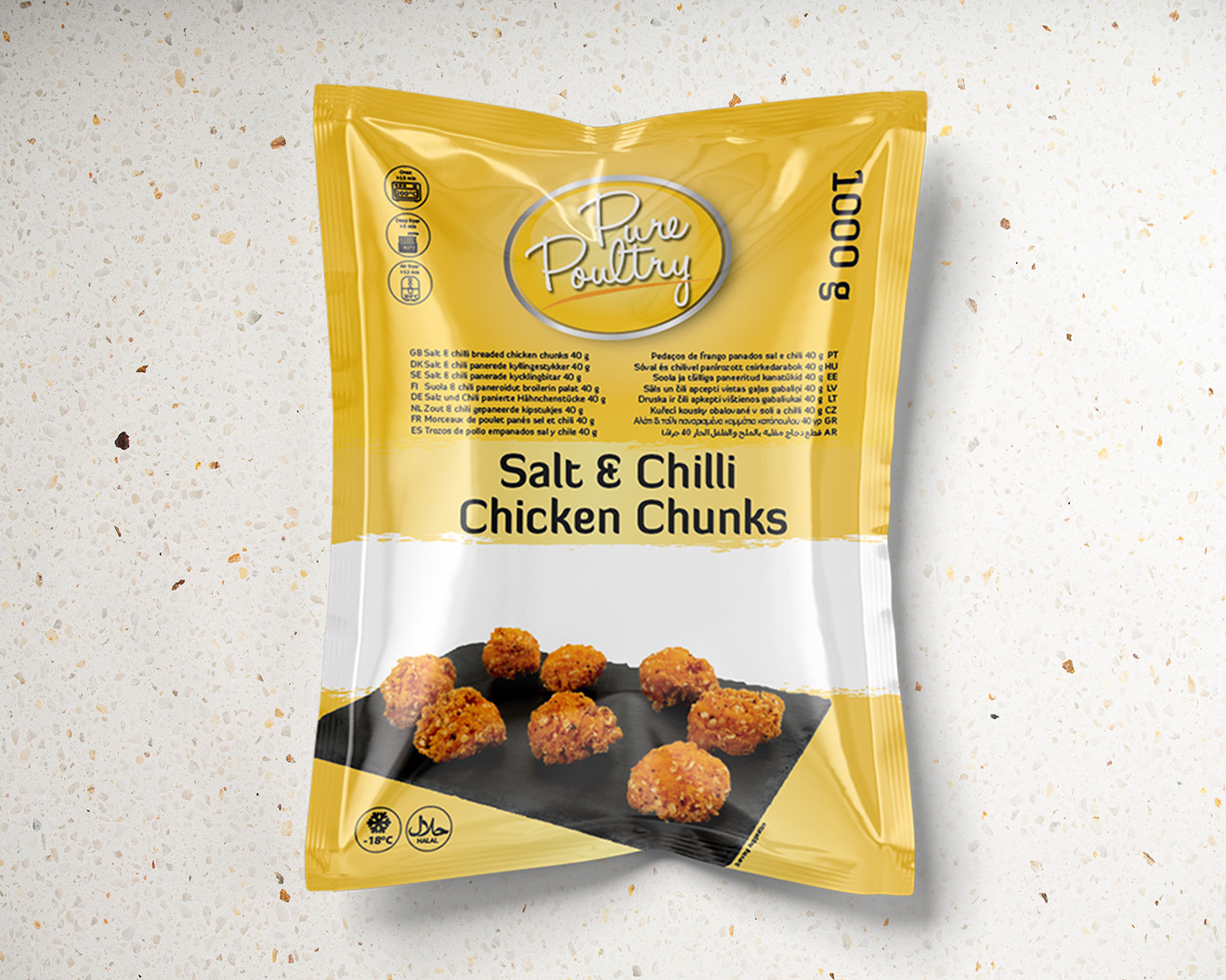 Surprise yourself and your guests with our delicious salt and chili chunks. Made with real chicken breast fillet in a great flavour coating, salt & chili.